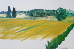 Intellectual landscapes depict rural views around her summer studios, seascapes around her hometown Monaco, sketched from high-speed French (TGV, Eurostar) and Japanese(Shinkansen) trains.
